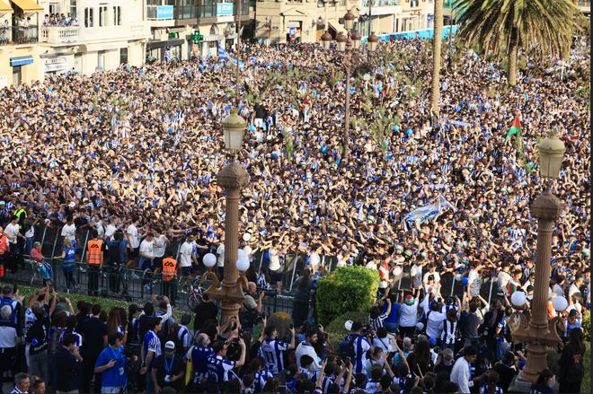 反观在塞维利亚举行的国王杯决赛,马竞对皇家社会,来了七万两千人,两边球迷各占一半场地,从头到尾没出任何乱子,气氛好得不得了,整个就是一场纯粹的足球盛宴,没有任何争议。